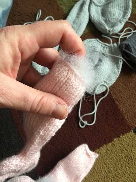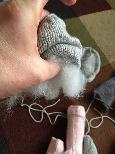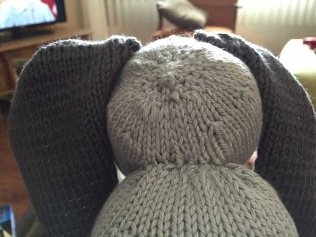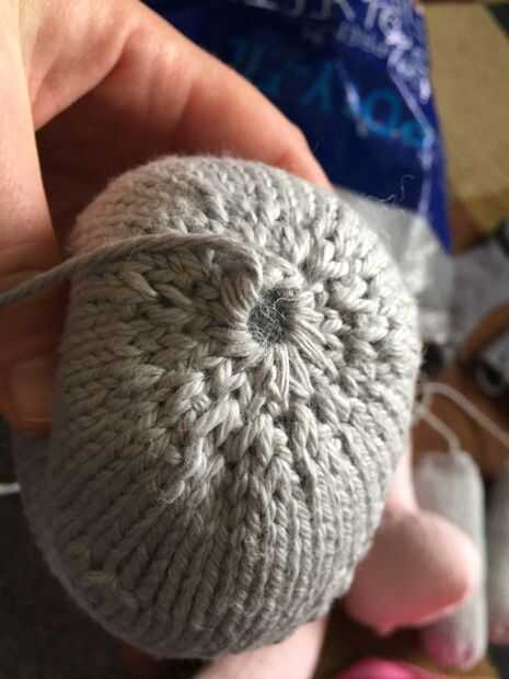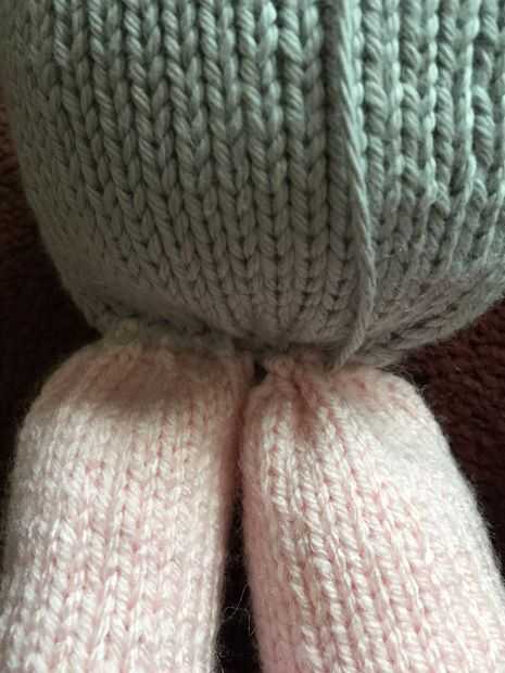- La pasé a su cabecita. Éste que tiene que rellenar un poco más firme. Trabajar el relleno en la nariz en pequeñas cantidades y cuando la cabeza está llena, apriete la porción de la nariz para hacerla más. Cuando termines con la cabeza, se reúnen la parte posterior roscando el elenco en hilo por el reparto de puntos de sutura y tire firmemente. La apertura se cierra firmemente.