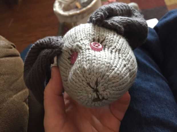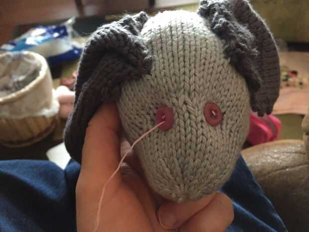 - Ahora, hice la cara. Las orejas ayudaron a centro de ojos y nariz. Puse los ojos donde la nariz se redujo de la cabeza. He utilizado botones. Me ha gustado el look. Puede usar hilo o hilo para hacer nudos de francés. Elegí rosa botones que no corresponden para una mirada más de patchwork. Los cosí en con seda bordado crema junta a través de la cara para que la cara tendría un aspecto más realista. 5 º foto de la derecha.