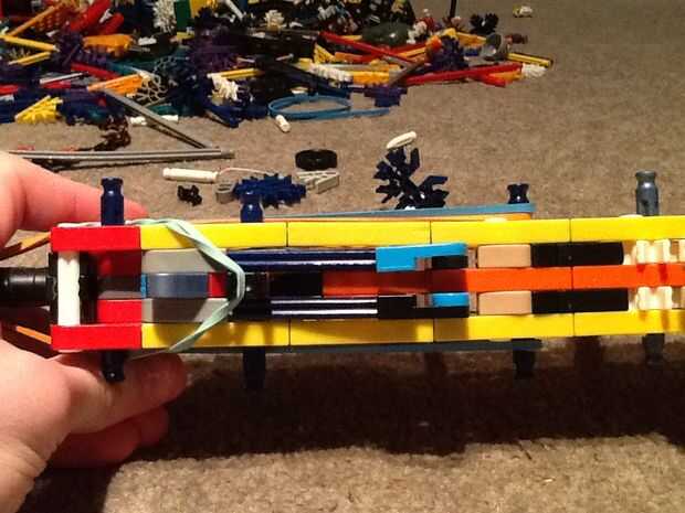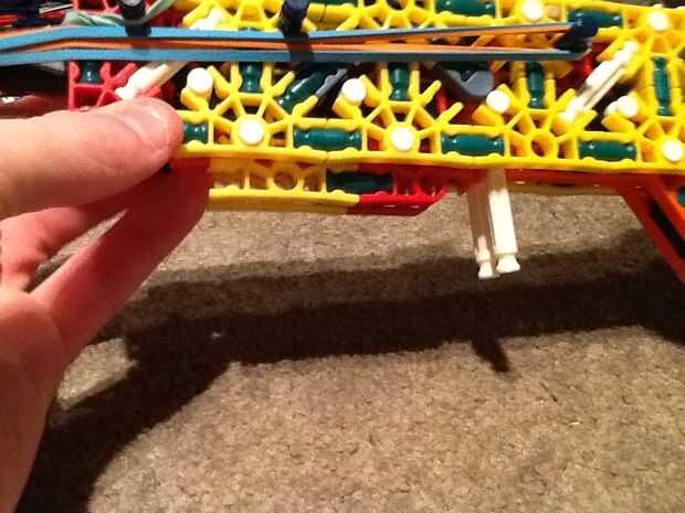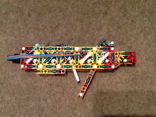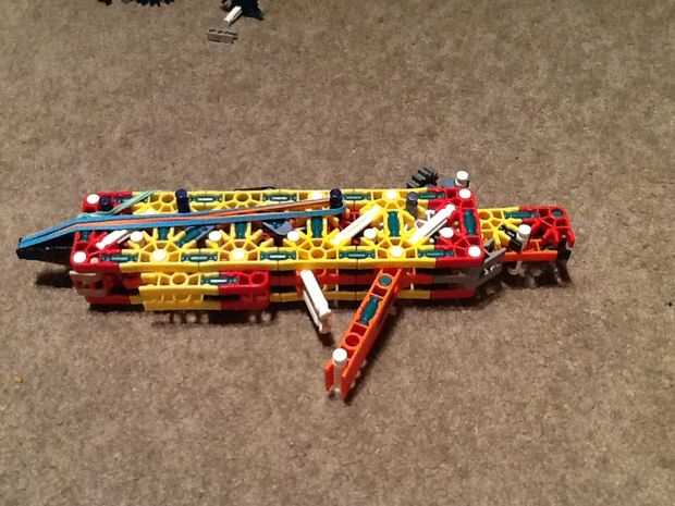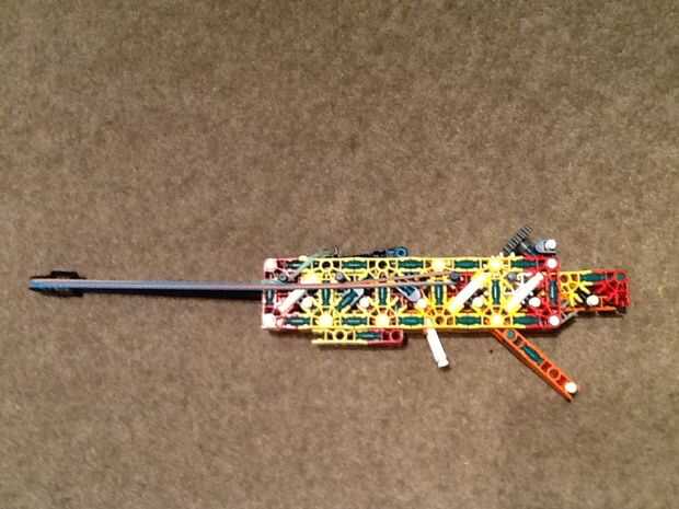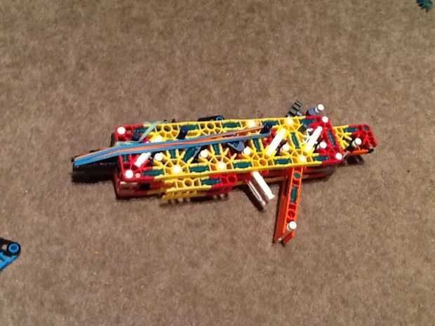 Cosas que acabo de añadir (que no están en las fotos). En la parte de atrás donde está el percutor, superior primer conector amarillo de 5 vías a cada lado reemplacé con una barra azul para evitar que el gatillo que puedan quedar atrapado. Sabe usted lo que quiero decir al generar esto. Me modded el fondo el disparador por lo que es conectar el barril con 2 piezas mujer de una pieza de la bisagra. Hacer más robusto el gatillo.