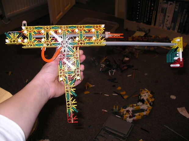 Hey chicos. no has posteado nada en un tiempo por conseguir un trabajo y estudiar para el final.  Sin más preámbulos les presento mi ametralladora con un toque.  La torcedura es que en lugar de utilizar un motor para girar la cadena que una manivela