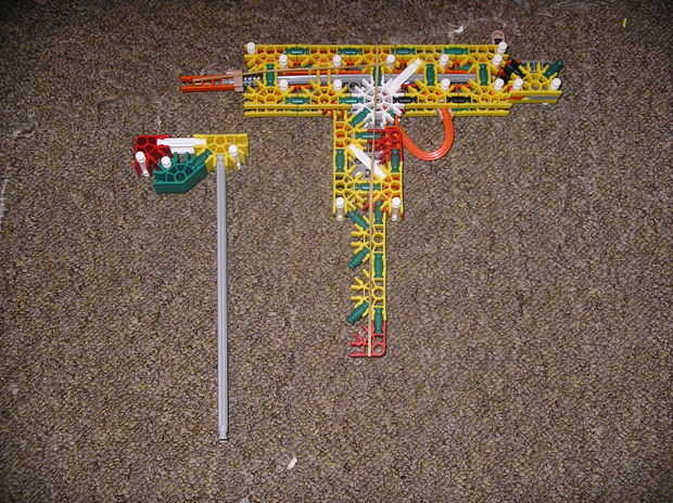 Este es mi KVG sub ametralladora con cargador extraíble, culata extensible (mi agradecimiento al libro rojo del oeste) y visor de punto rojo.Paso 1: barril Paso 2: gatillo Paso 3: manejar Paso 4: revista Por debajo de la cinta es barras verdesPaso 5: