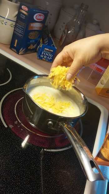 Combinar 1/4 taza de mantequilla, harina, leche, sal y queso cheddar de Vermont en una olla grande sobre fuego medio; cocine y revuelva hasta que el queso se haya derretido y la mezcla espese, 7 a 10 minutos. Añadir los macarrones y revuelva para cubrir.