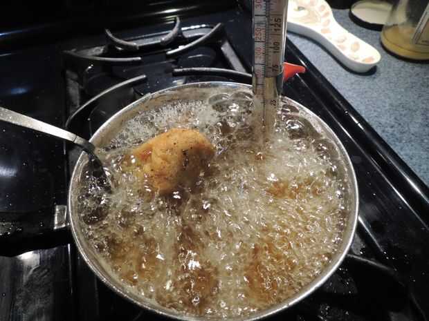 Calentar una sartén profunda a 325 grados. Si no tienes una sartén profunda, usted puede llenar una cacerola pequeña 2/3 con aceite y controlar la temperatura con un termómetro de caramelo. Freír las bolas en grupos de 2-3 minutos hasta que la capa alcance un color dorado profundo. Retirar del aceite y escurrir sobre toallas de papel por 5 minutos. ¡ Ahora, coman!!!! Si son un poco demasiado picantes para su gusto, se pueden sumergir en un poco aderezo ranch o queso azul.