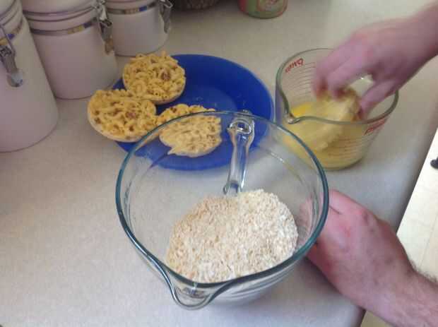 Una vez que todo está bien mezclado rociar el molde con spray antiadherente y tapa apagado con mezcla de macarrones.