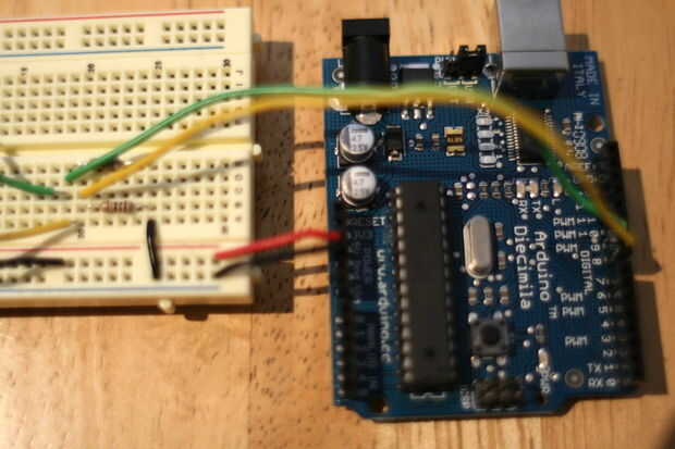 Enchufe el interruptor #1 (líneaverde ) en el pin #9 en el Arduino.