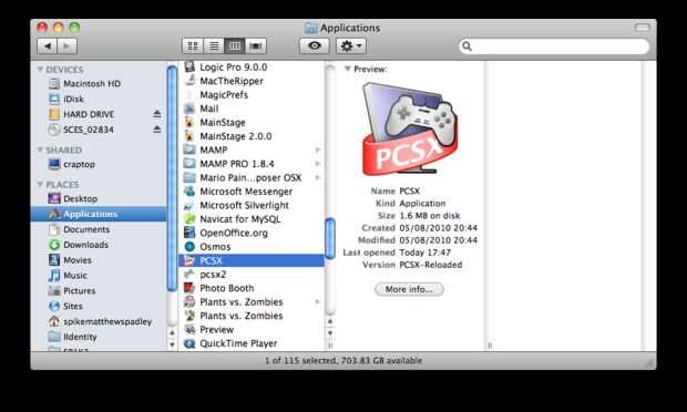 Ahora, ir a tu carpeta de aplicaciones y abrir PCSX!