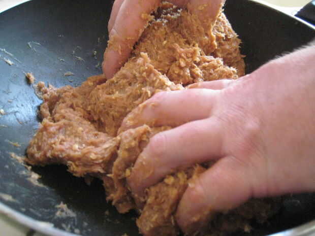 4. Utilice las manos para triturar todo junto hasta que se mezcle bien.