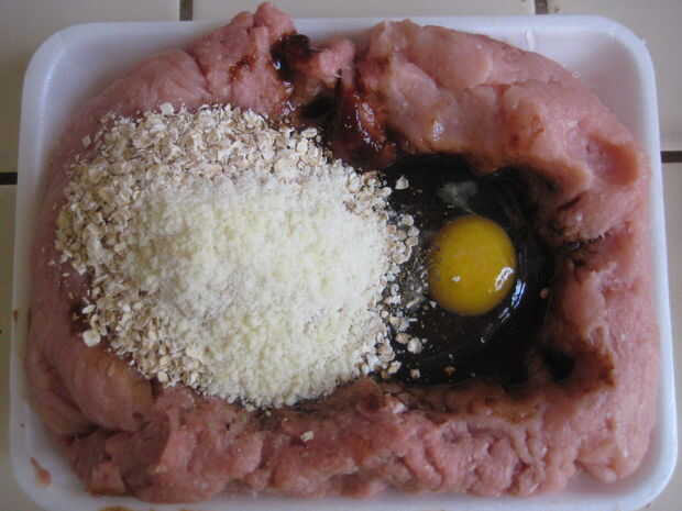 3. Coloque todos los ingredientes de pastel de carne en el bol de la carne.