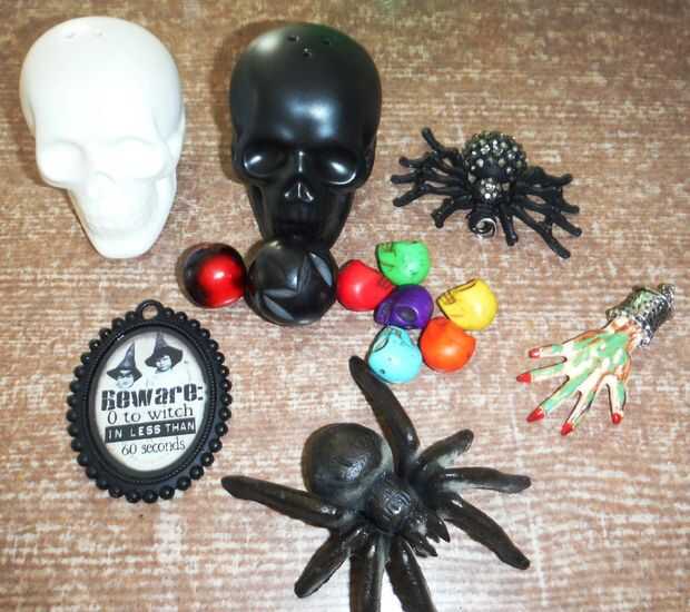 - Tela cortada en cuadrados pequeños (escribí TRICK OR TREAT en él)