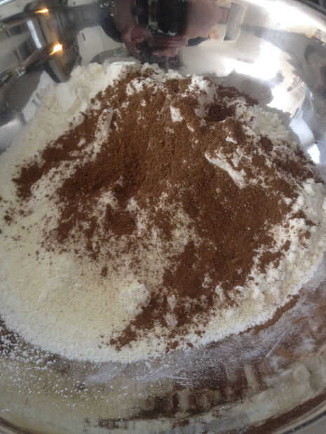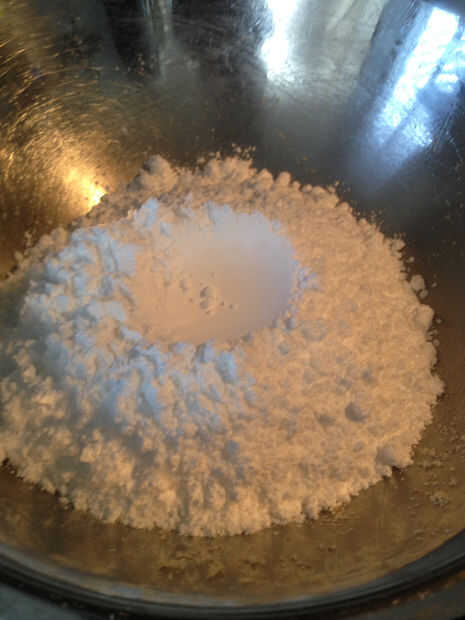 Tamizar el azúcar glas y mezclar en la harina de la tuerca