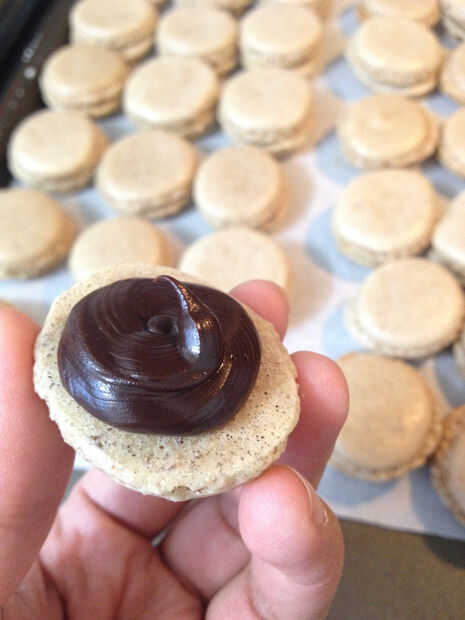 Para los macarons de especia de calabaza, usar ganache de chocolate doble