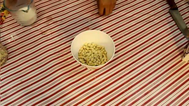 Sobre una estufa o en el microondas, poner la crema de leche a fuego lento. A continuación, poner los chips de chocolate en un recipiente resistente al calor y vierta la crema sobre. Mezclar hasta que la mezcla esté suave. Poner la ganache en un refrigerador hasta que espese y es capaz de conectarse.