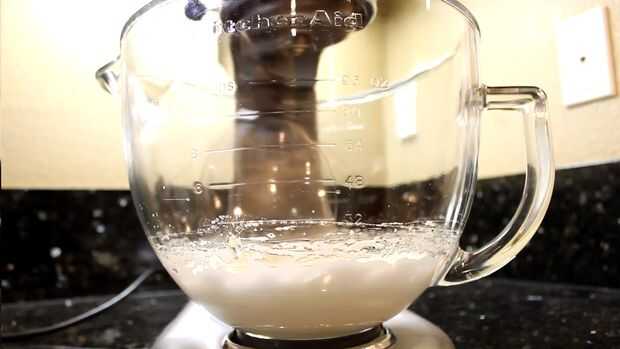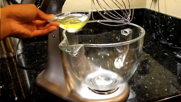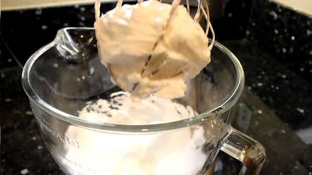 Separar la yemas de huevo y claras. Para esta receta, sólo utilizaremos la parte blanca. Ten mucho cuidado, ya que cualquier contaminación de yema puede macarons desinflado. Verter las claras en el bol de una batidora junto con el azúcar y batir con una batidora en velocidad media-alta hasta que los huevos forman picos rígidos y secos. Si utiliza colorante de alimento, esto es cuando usted agregaría en. Continuar batiendo hasta que el color es uniforme.
