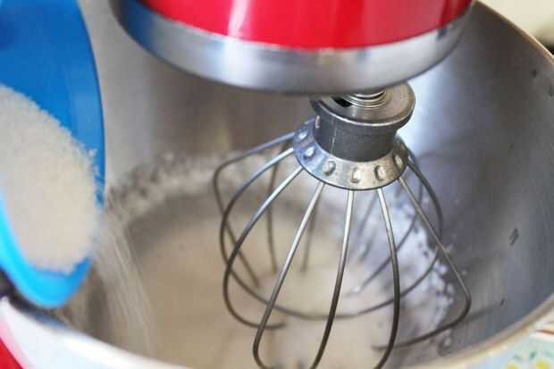- Gradualmente agregar el azúcar granulado a las claras de huevo, mezcla entre.
