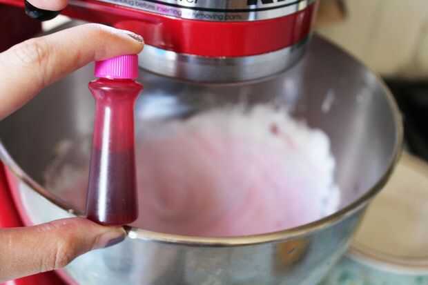 Si tienes colorante en polvo, puede Agregar a los ingredientes secos en vez de las claras de huevo.