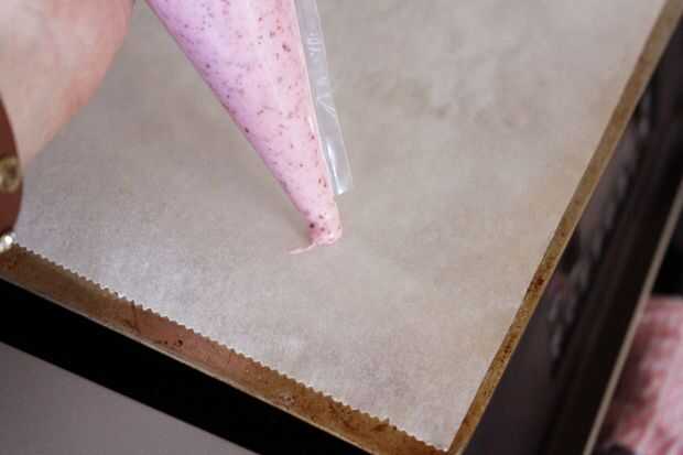 Cortar el extremo de la bolsa y comenzar la tubería en el papel de pergamino.