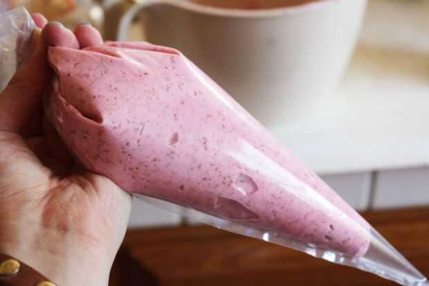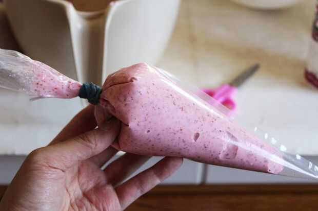 Coloque la mezcla en una manga pastelera. Me gusta el bolso plegable sobre un vaso alto, para hacer más fácil mantener abierto mientras estoy sacando la pasta en. Asegúrese de que no llene la Manga pastelera, así que usted puede/ligadura la parte superior de él más adelante.