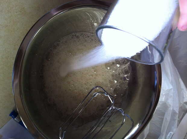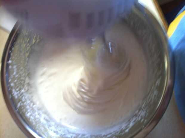 3. cuando blanco, añadir el resto de azúcar impalpable y batir hasta forma picos suaves y llega a ser bastante rígido.