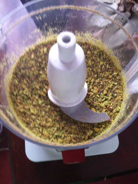 6. Ponga los pistachos en un procesador de alimentos y blitz hasta en pequeños pedazos.