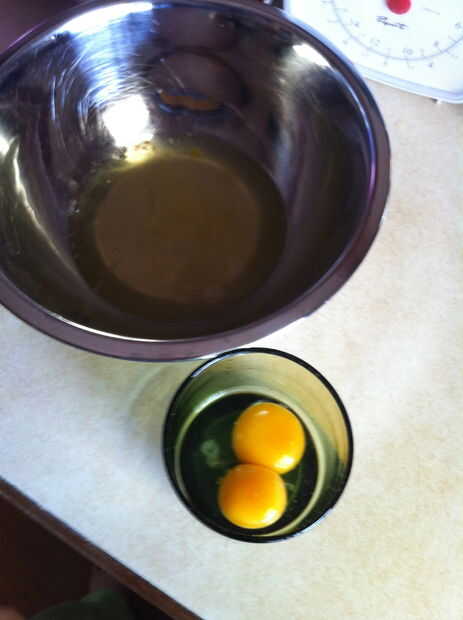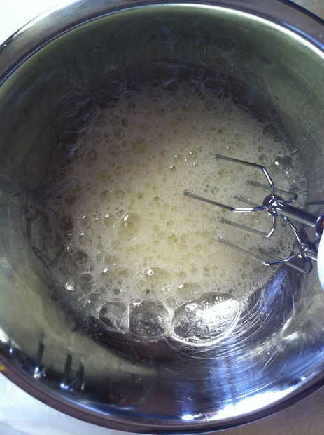 1. bata las claras de huevo en un tazón hasta que aparezcan burbujas (10 seg)