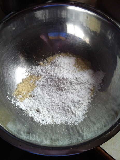 2. Mida la harina de almendra y azúcar glas en un recipiente grande y combinar.