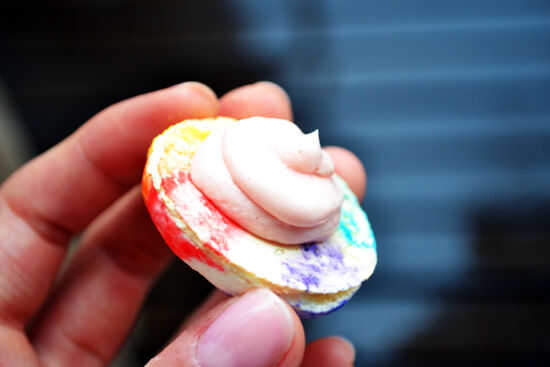 publicado originalmente en: http://www.mommyknows.com/how-to-rainbow-cupcakes-in-a-jarPaso 1: Lo que necesitará Precalentar el horno a 350fLo que necesitarás:mezcla para pastel blanco en caja 11 lata de glaseado blancovariedad de colores de glaseado