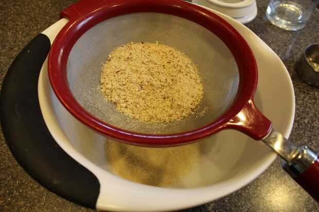 Tamizar la harina de almendra y azúcar juntos y bata para combinar.