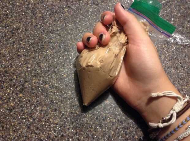 2. colocar todo el relleno en una bolsa de plástico y corte la punta de la misma.