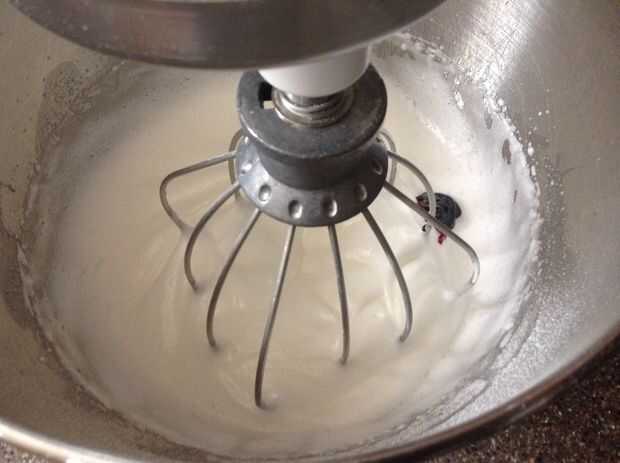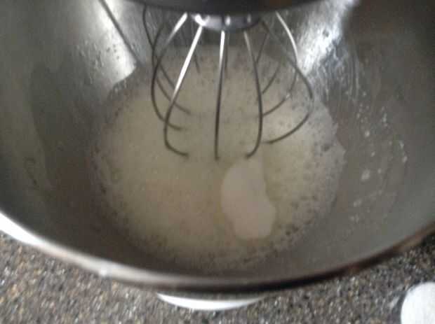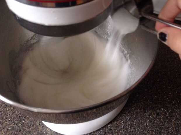 3. Añadir un poco de azúcar granulada y batir otra vez. Seguir agregando poco a poco hasta tener un merengue ligero y esponjoso.