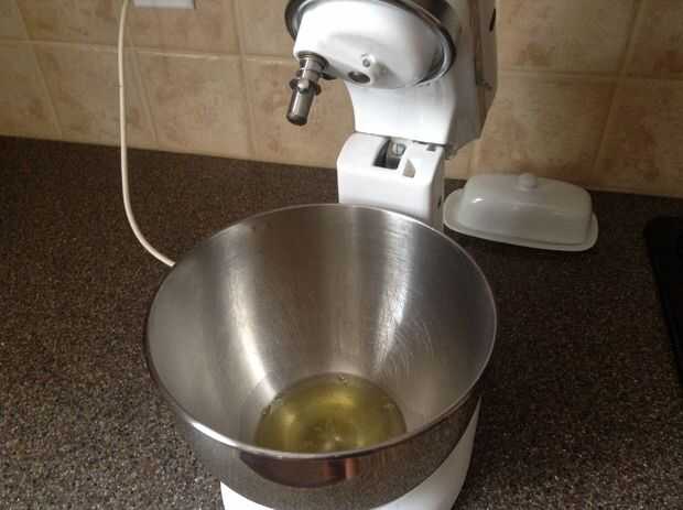 2. Gire la velocidad a alta y batir hasta que el huevo espumoso