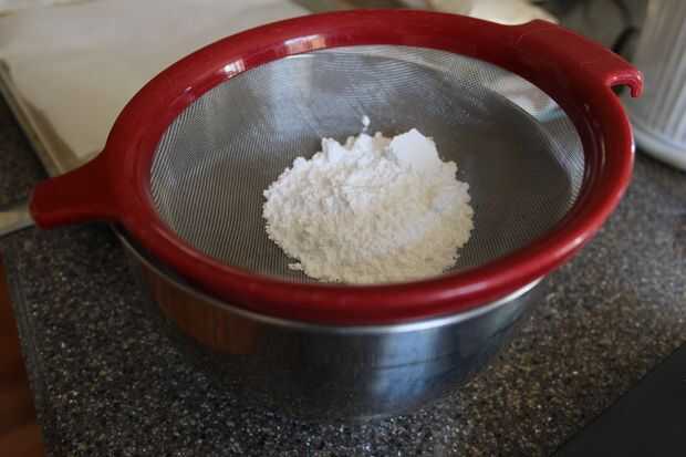 Tamice el azúcar impalpable y la harina de almendra en un tazón pequeño. Bata hasta que bien combinado y sin trozos. Cernir nuevamente si es necesario.