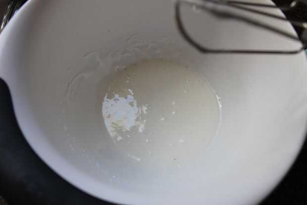 Separar la clara de huevo y colocarlo en un tazón mediano. Con una batidora eléctrica, mezclar en alto hasta que espumosa y burbujeante.