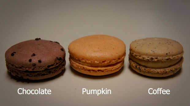 Yo quería elegir una paleta de colores de otoño para los macarons y eligió unas con sabor a café, chocolate y calabaza.