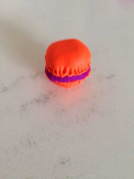 Poner el relleno entre las dos mitades de las galletas de almendra. Cuidadosamente seleccionar los bordes que se sobresale por lo recorte o aplastarlo, pero ten cuidado porque puede romper la arcilla. Si esto sucede, moldear la arcilla de nuevo juntos.