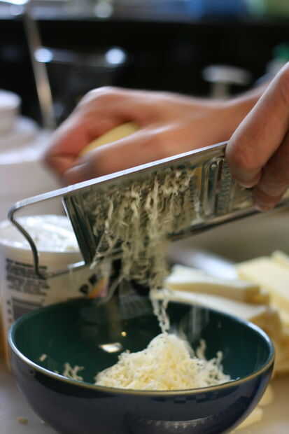 Rebanar o desmenuzar quesos duros por lo que se funden más fácil cuando está puesto en fideos calientes.