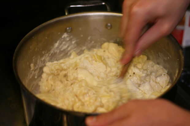 Mezclar todo junto hasta que se derritan en su mayoría.