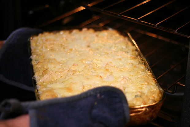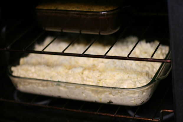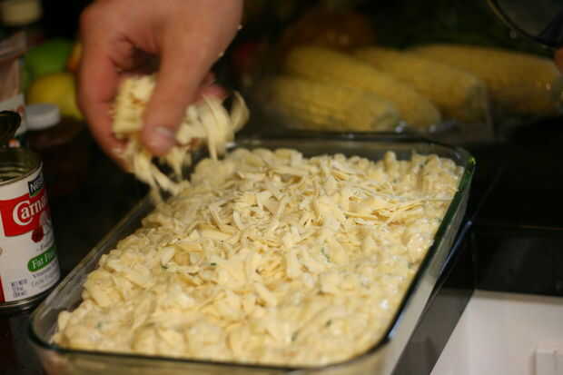 parte superior espolvorear con 4oz rallado Gouda y 4oz rallado Fontina