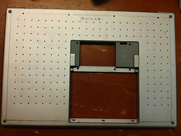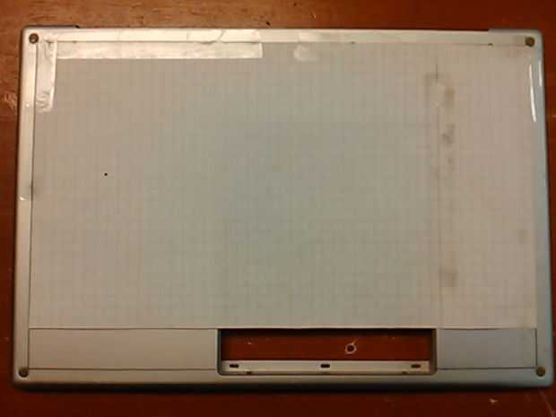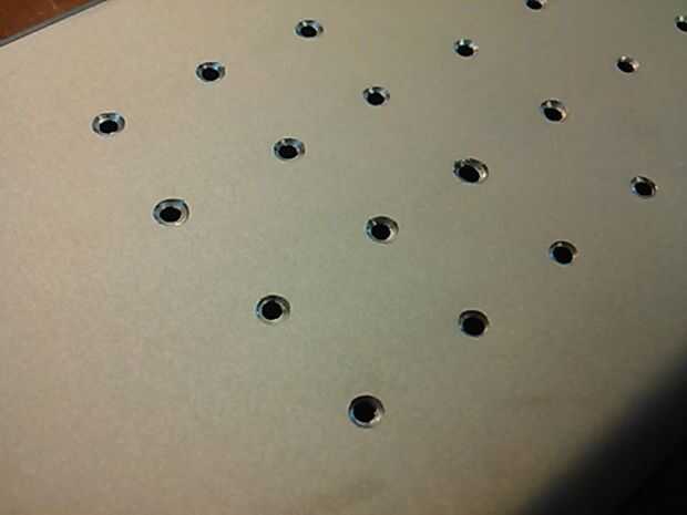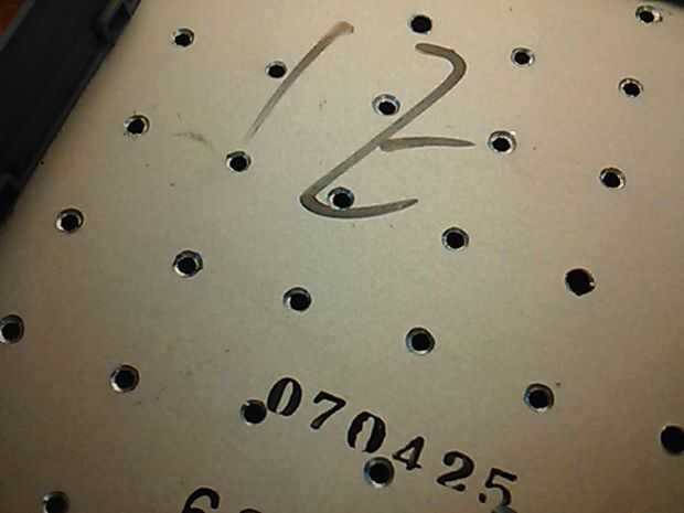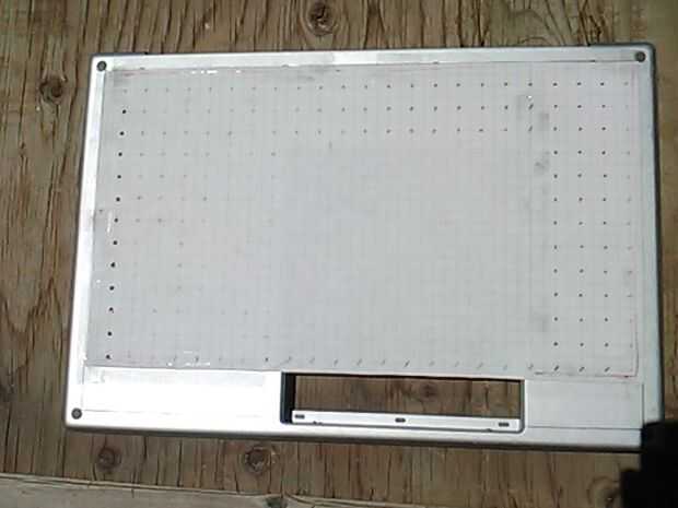 Rasgó la zo todo la bandeja inferior, marcado con un lápiz y borde estrecho, grabado algunos ver papel abajo y comenzó a perforar. Tuvo cuidado de no para perforar a través de algo importante. Luego utilicé un poco más grande de tamaño para limpiar los orificios dentro y por fuera.