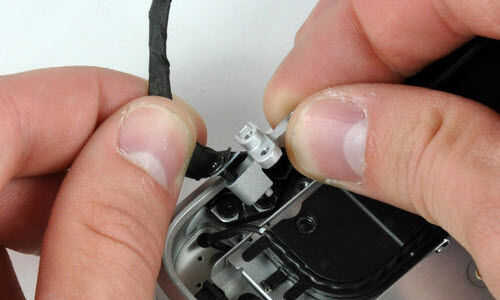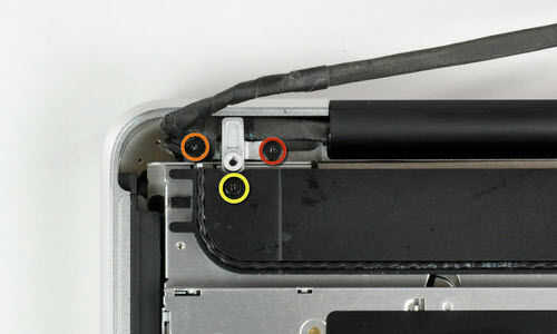 El cable de la iSight tiene un ojal a través del que pasa la mayoría de izquierda tornillo en estas fotos.