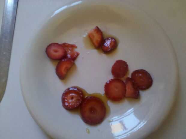 Aquí está un breve vídeo de las fresas en el vacío. Puedes ver el jarabe de arce de ebullición y agua hirviendo de las fresas llano.