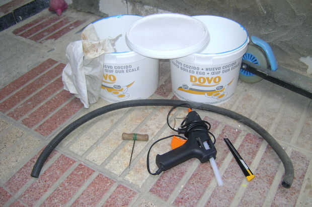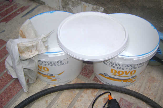 - 2 Cubos de plástico. En este caso de una cocina industrial (sí, tengo muchos, los tenía para otra cosa, pero...)