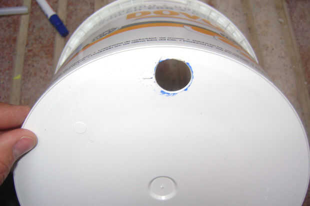 Después realizamos el agujero para el tubo de llenado. Lo dejado a un lado para el tubo esté más accesible una vez haya crecido la planta.