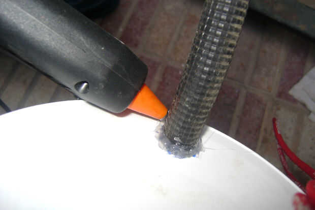Colocamos entonces el tubo de llenado. Lo pegado con mi amigo el pegamento termofusible para evitar que, por ejemplo, cierto duende de dos años tengo en casa no le de por tirar del tubo y me desmonte el sistema.