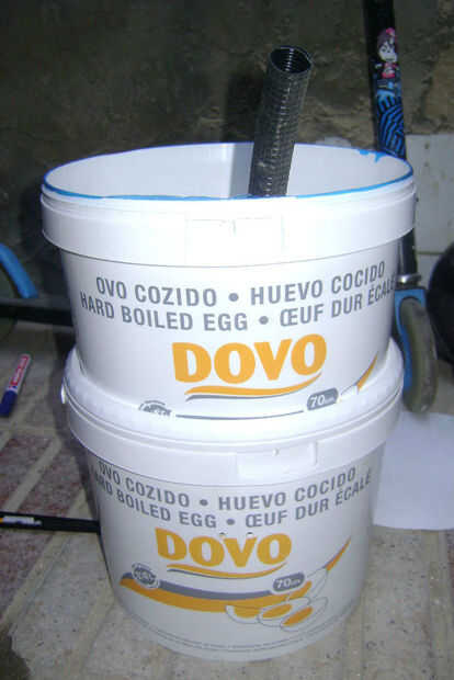 Para saber cuándo está el depósito lleno le ha perforado dos conexiones a la altura aproximada de donde queda el cubo de arriba. Cuando vea se venta el agua es está lleno. ¿Sofisticado, EH?