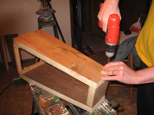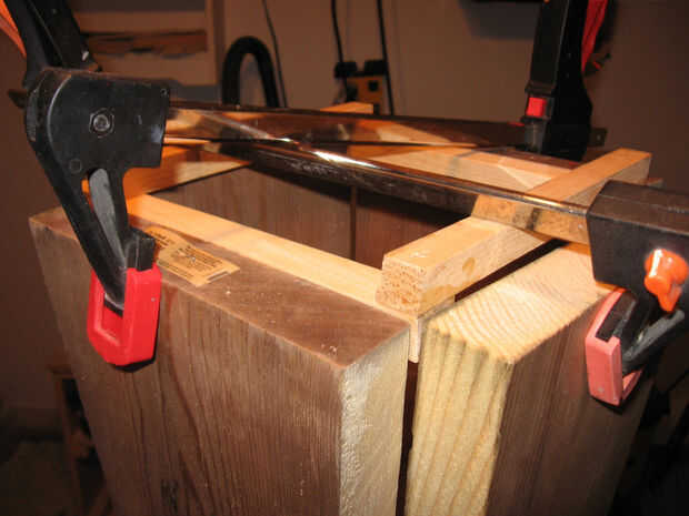 Para montar el cuerpo del Jarrón, sujetar la parte inferior de los lados del Jarrón a base de theplanter con 2 tornillos a cada lado. Tener especial cuidado para asegurarse de que los lados son cuadrados con el fondo de la maceta. Durante este tiempo, para asegurarse de que la parte superior de la jardinera quede juntos, utilice la plantilla y pinzas para mantener juntos la parte superior de la maceta como Fije la parte inferior.