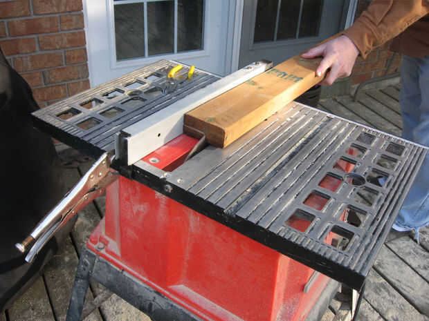 Para crear la ranura, primero ajuste el tope-guía de la mesa vio que 7/8 pulgadas de la hoja. Al mismo tiempo fijar la altura de la hoja a 1-7/8 pulgadas