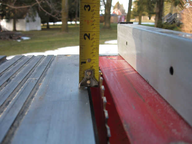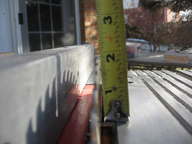 A continuación, restablecer la cerca de la sierra que es 2-7/8 pulgadas de la hoja. A continuación establece su altura en pulgadas de 3/8.
