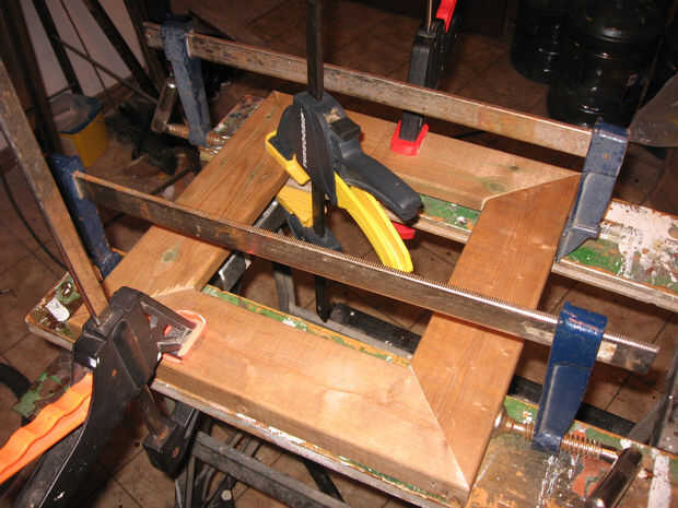 Utilizando pegamento resistente a la intemperie exterior, montar el cuadro. Para agregar más lejos a las articulaciones, también utilizo algunos clavos en las esquinas para unir la articulación de acabados.