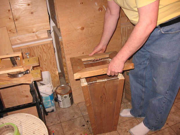 Para completar el plantador, Aplique pegamento exterior en la parte superior del cuerpo del Jarrón y fijar el travesaño - con muescas laterales hacia abajo, en la parte superior del cuerpo del florero.