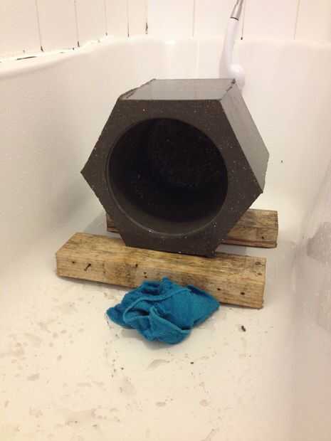 te voy a mostrar cómo hice un bloque de hormigón. Este bloque es mi prototipo. Puedes ver el molde averiado en el fondo.Este bloque es aproximadamente 18 pulgadas de largo x 10 pulgadas de la base x 11 pulgadas de alto. Tiene un núcleo de espuma i
